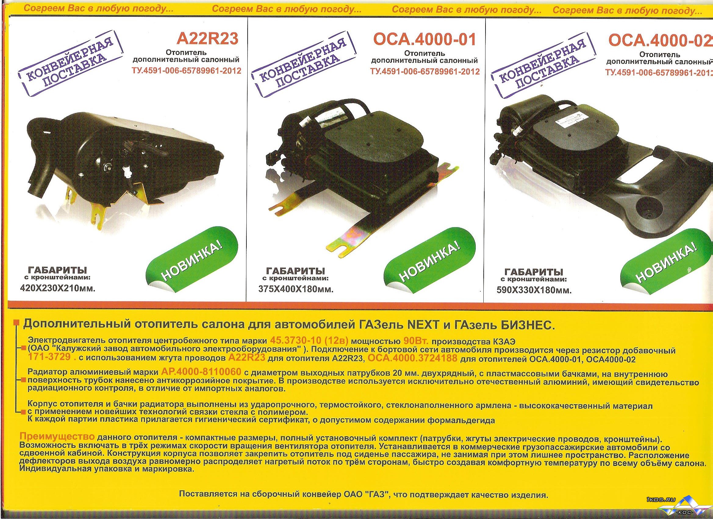Дополнительный универсальный отопитель для "Газели". Цена: 2 800 р.